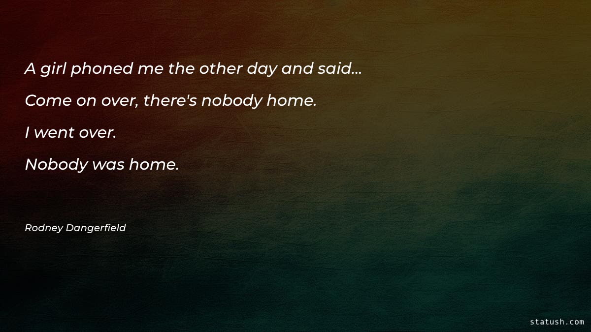 A girl phoned me the other day and said... Come on over, there's nobody home. I went over. Nobody was home.