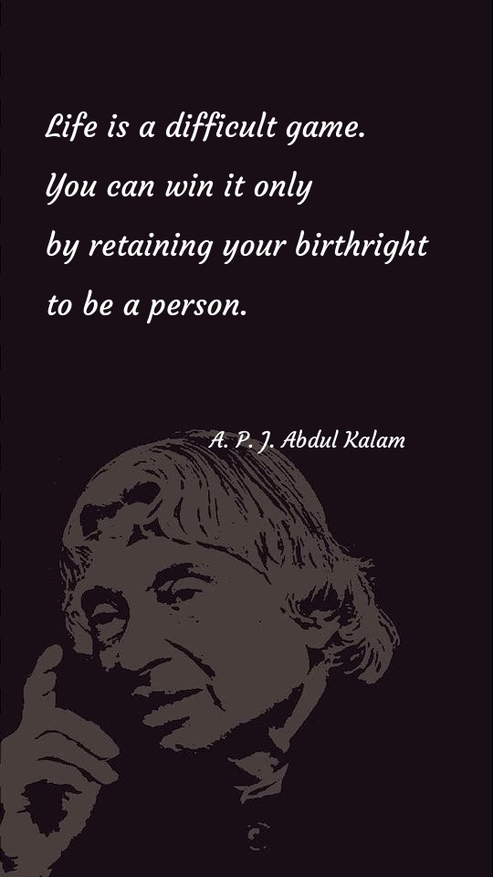 जीवन एक कठीण खेळ आहे. तुम्ही हे फक्त तुमच्या व्यक्ती होण्याचा जन्मसिद्ध अधिकार राखून जिंकू शकता.